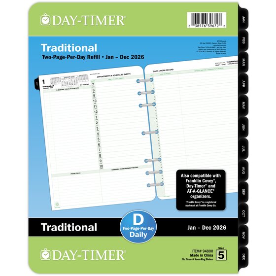 Day-Timer® 2026 Two Page Per Day Reference Armorhide Leather Planning Bundle, Folio Size